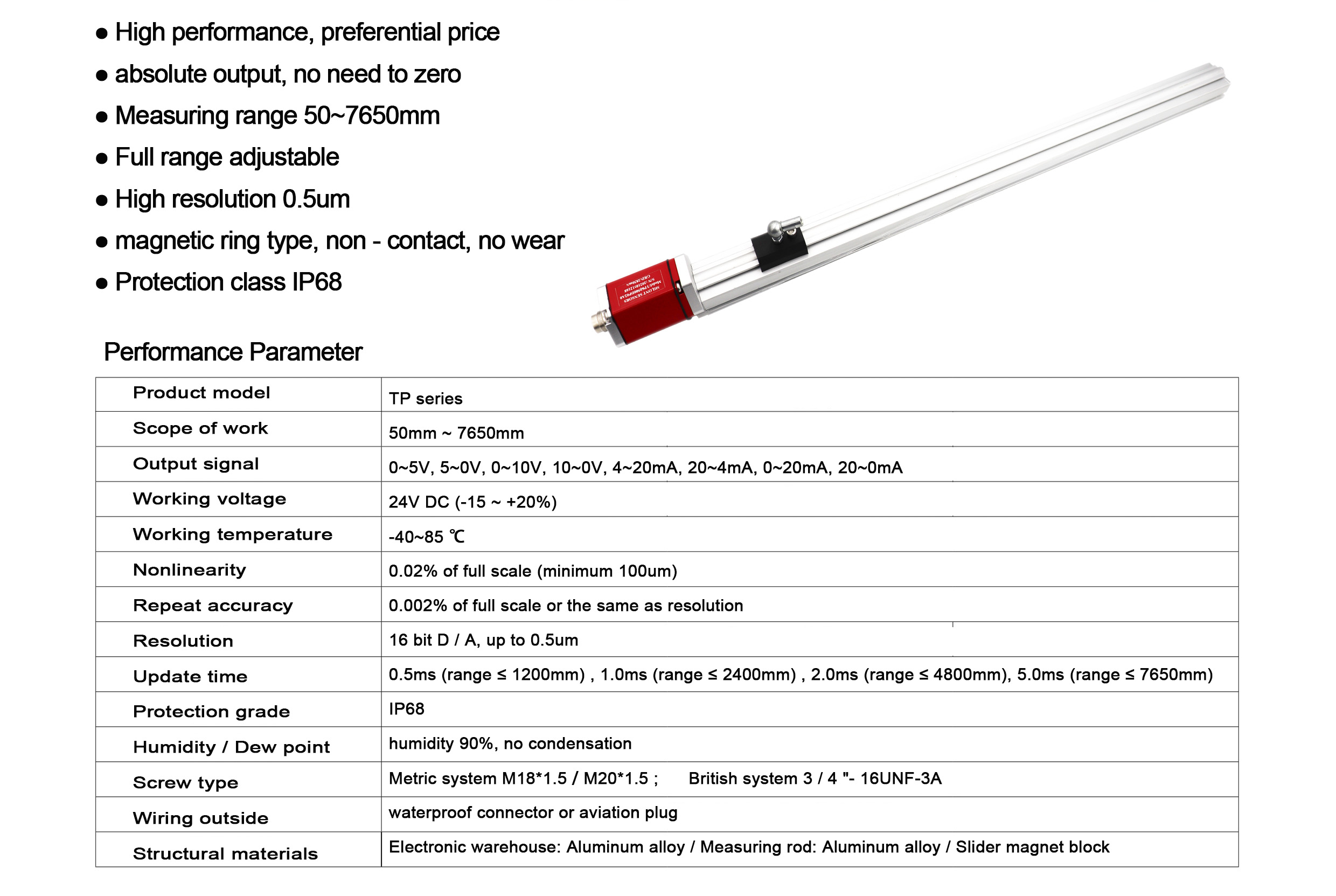◆ Straight line measurement Absolute output, no need to return to zero
