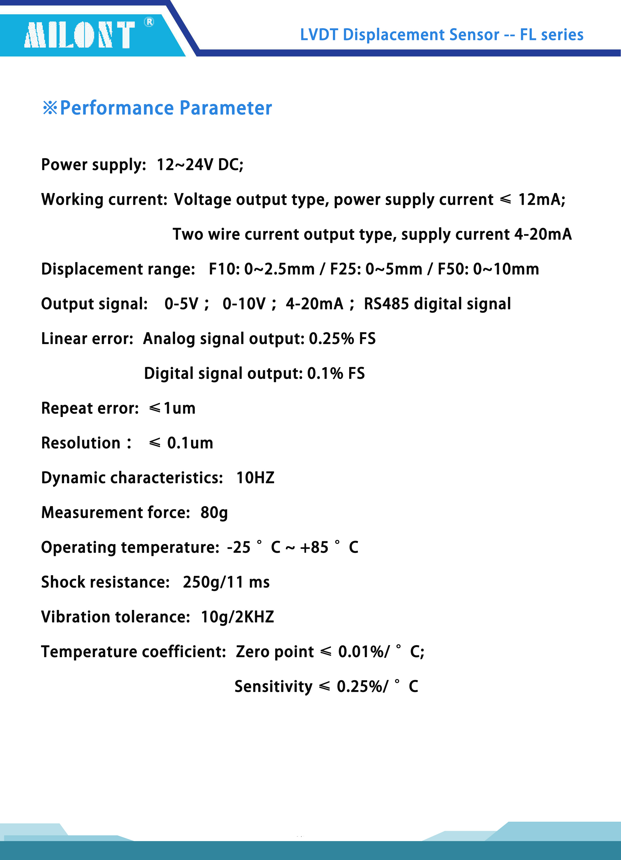 Zero point ≤ 0.01%/ ° C; Sensitivity ≤ 025%/ ° C? |