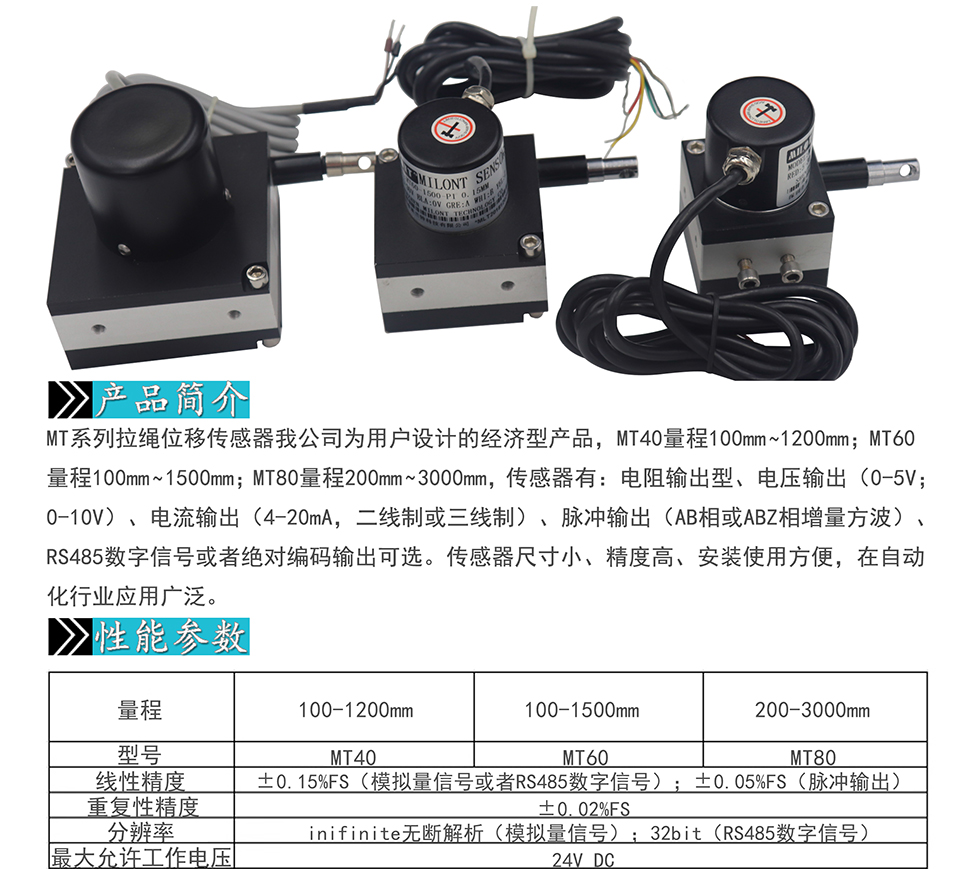 米蘭特MT拉繩位移傳感器安裝比較簡便,主要用于各類自動化機(jī)械設(shè)備位移測量與位置定位。