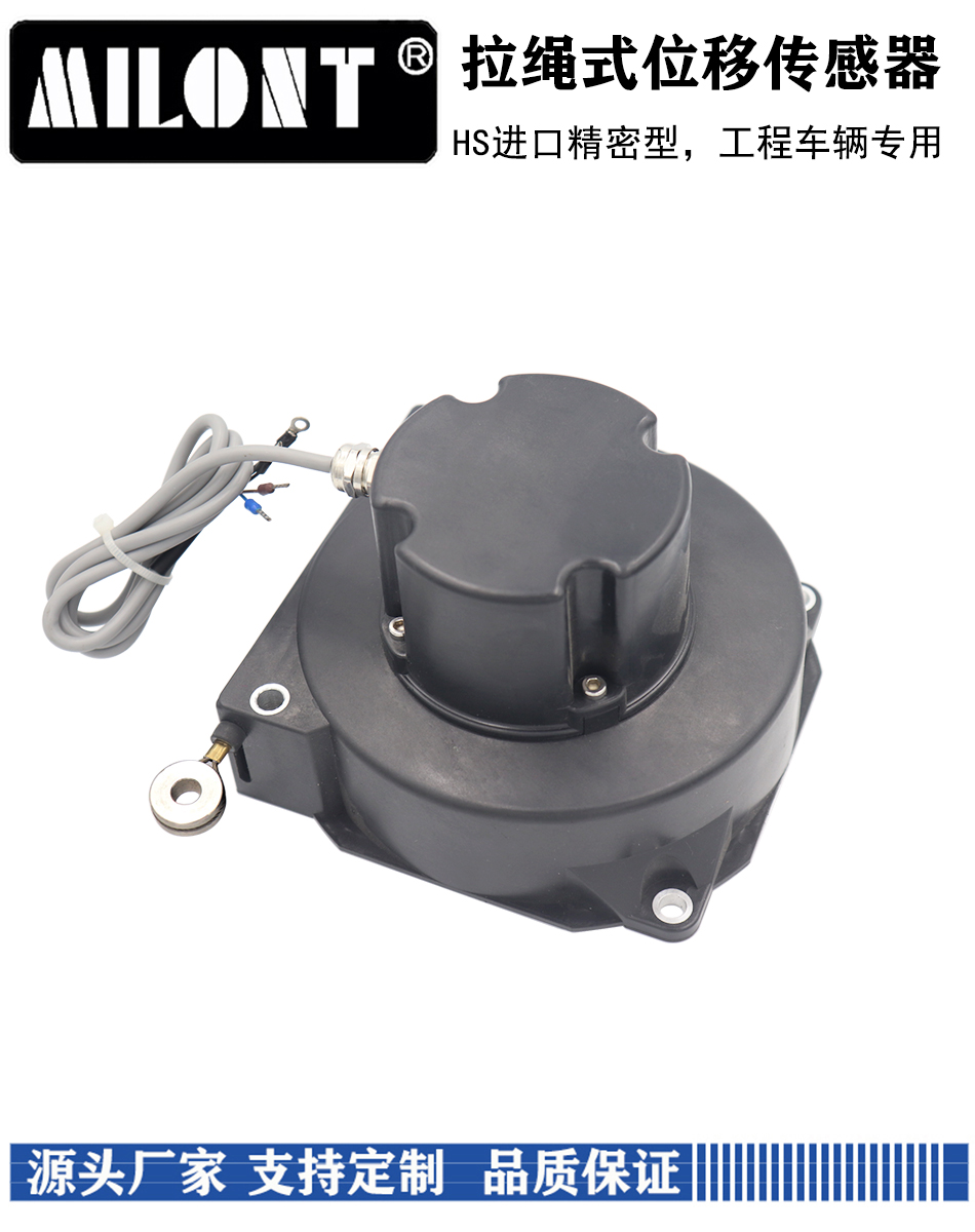 HS拉繩位移傳感器采用加粗拉繩(1.5mm與1.2mm),抗沖擊性能與耐磨性能較好,適用于吊車(chē)、水泥車(chē)、垃圾車(chē)等特種車(chē)輛位移測(cè)量與位置定位。